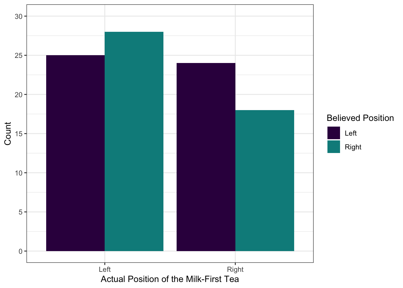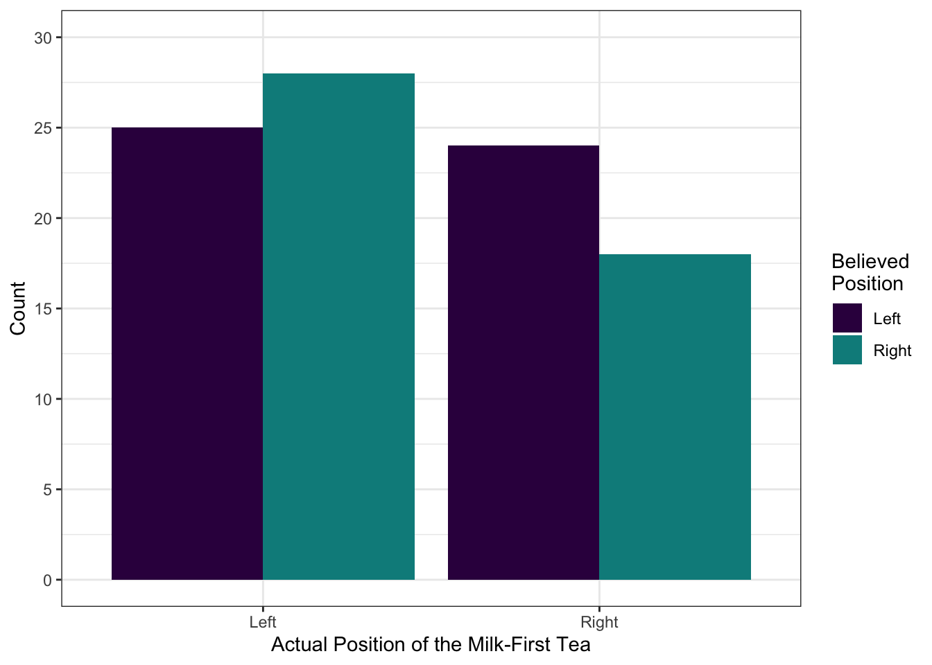 You may know someone - or be that someone yourself! - who is convinced that you can tell the difference when someone makes tea “wrong”. Well, whether there is a right or wrong way to make a cuppa is a matter of opinion2, but whether someone can accurately identify a difference in taste is a matter of science. So - let’s design an experiment and then analyse the data to find out!
