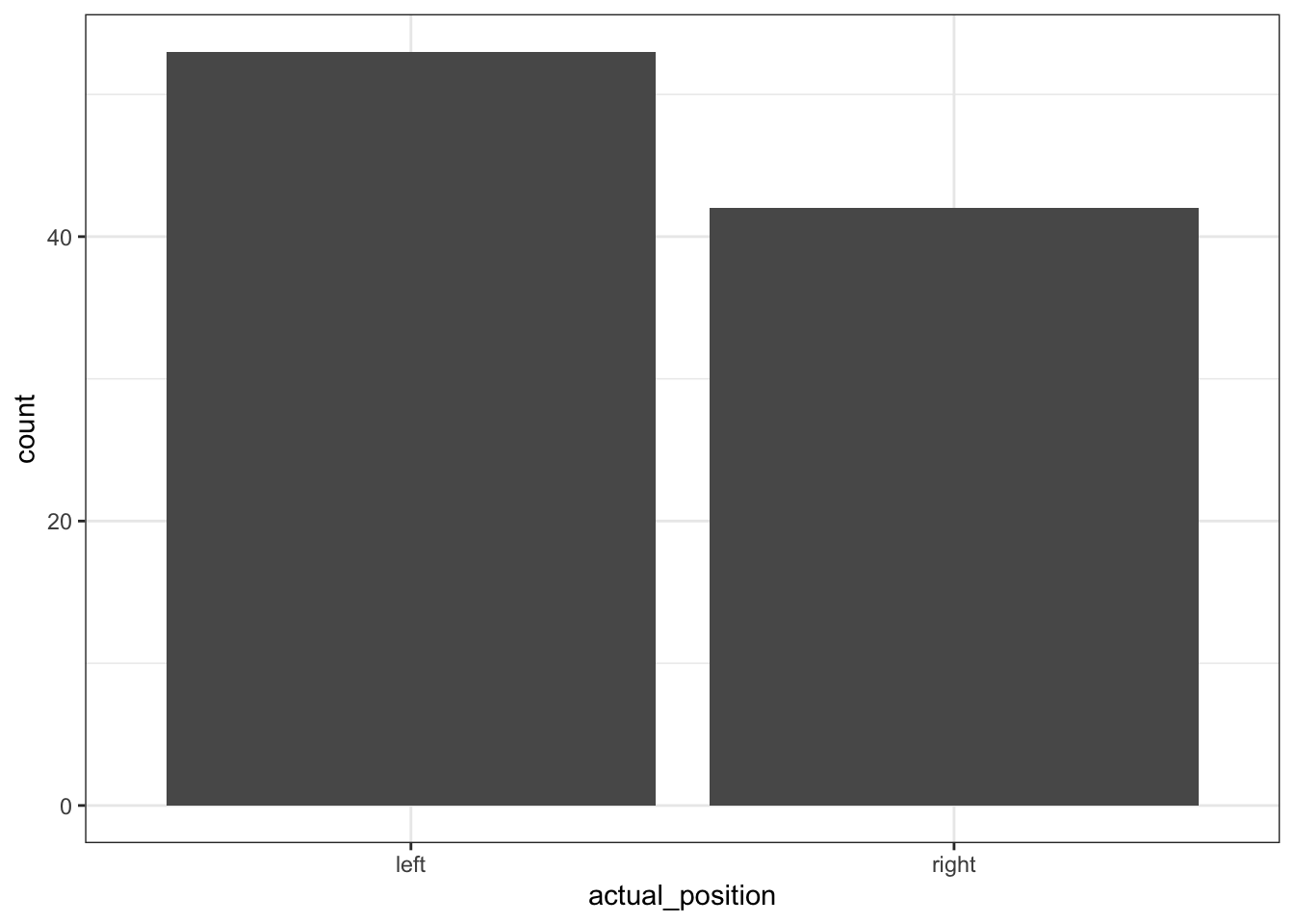 Start by creating a basic bar chart of the actual_position variable like the one below, and adding a theme to spruce it up.